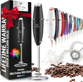 The hand frother will literally change your life. I even take it with me on vacations. Also, the glassware items are great gifts for any of your beverage loving besties.