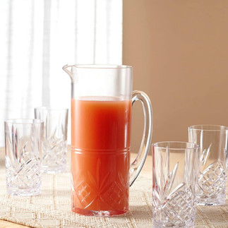 Pitcher: (My pitcher was a wedding gift and from Bed Bath & Beyond so unfortunately I can't find it anymore but here are other pitchers I think are somewht similar but also beautiful! My pitcher is about 60 oz.)